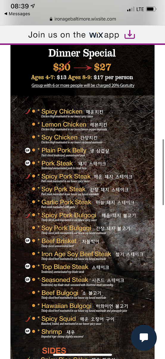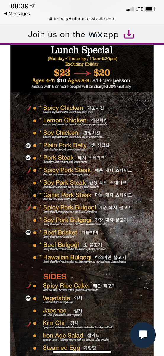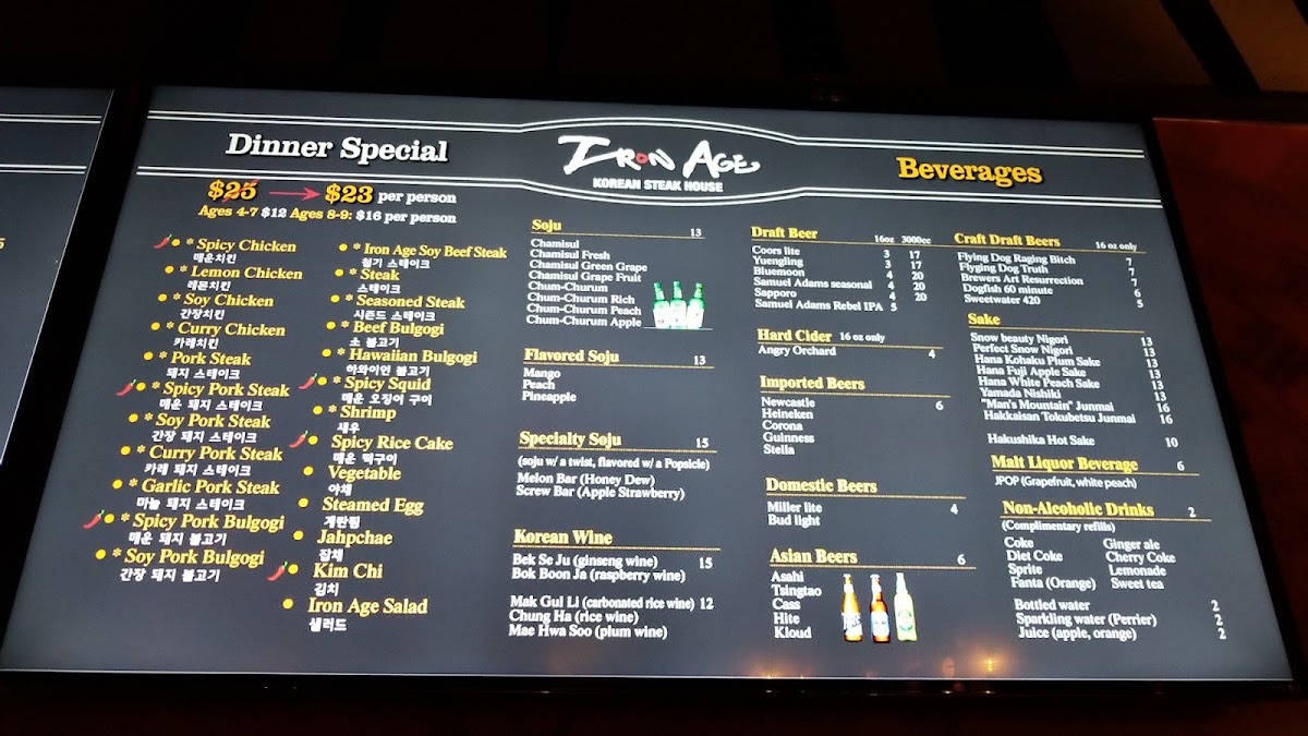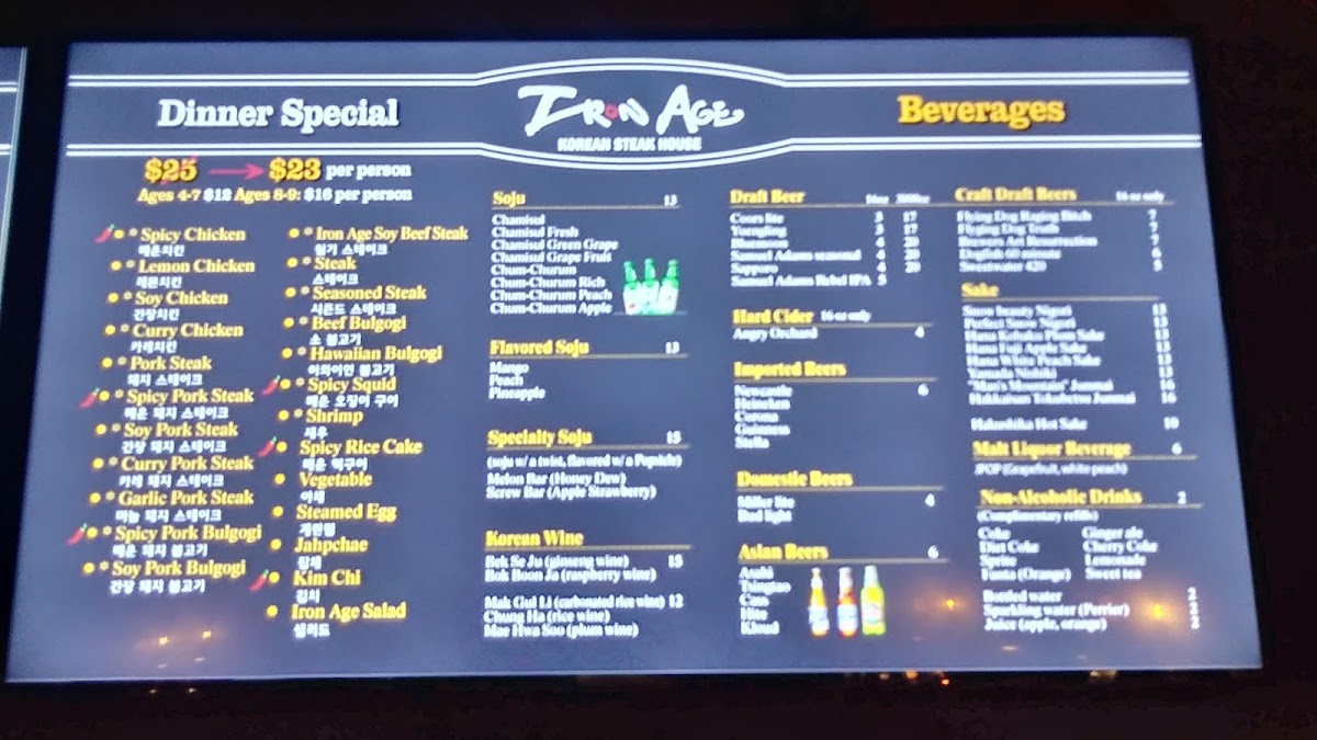 Iron Age in Baltimore offers a menu centered on Korean barbecue favorites that invite relaxed, communal dining. The selection leans into a variety of grilled meats like tender soy beef steak and bulgogi, alongside fresh vegetables and comforting sides. It's a place where casual meals turn into shared experiences, with the grill at the table setting a warm, interactive tone.